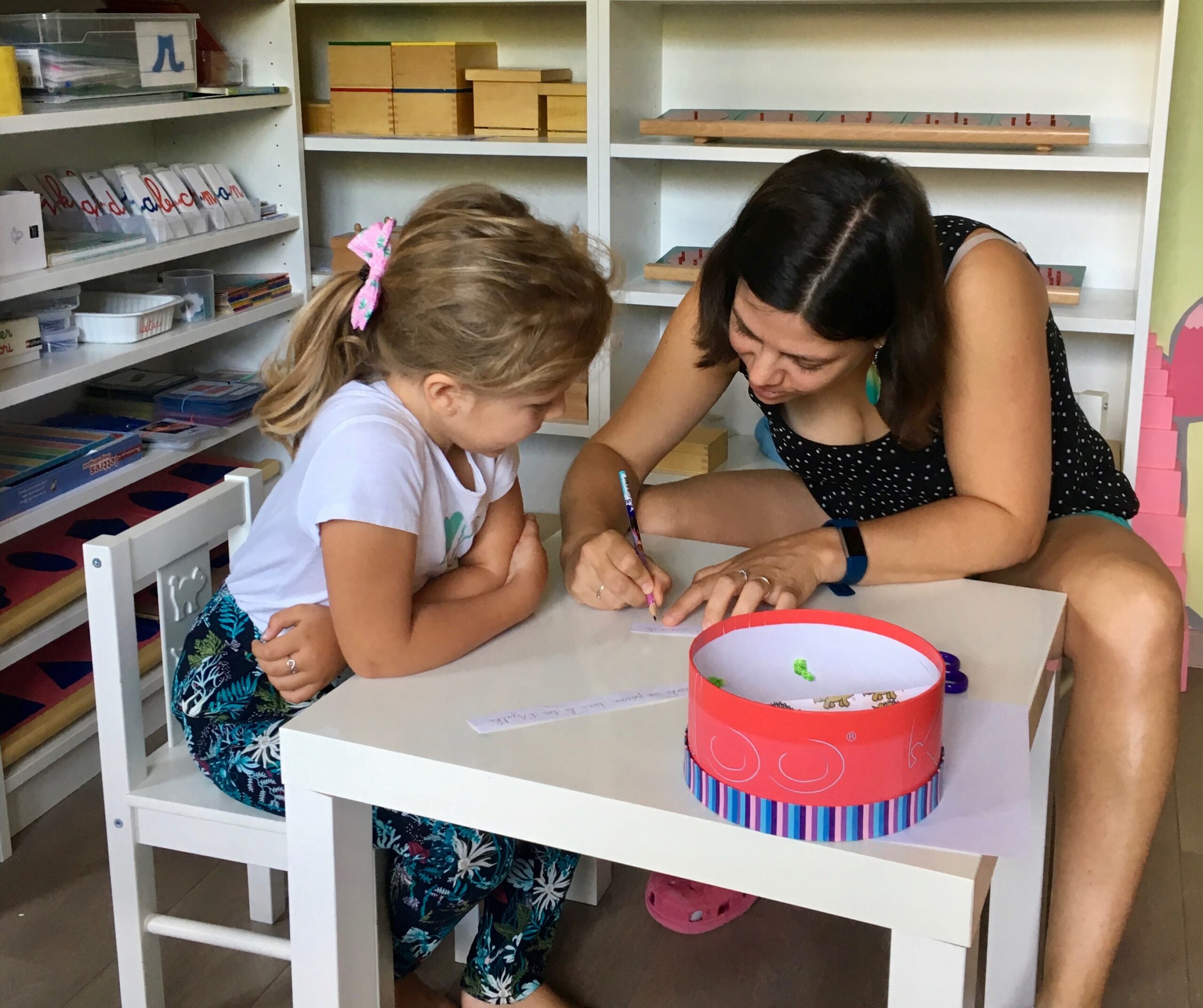 Tout au long de la journée, l’adulte présente le matériel aux enfants en suivant la progression, il planifie ses présentations et note chaque jour les présentations réalisées et ses observations.