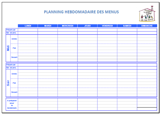 Le planning hebdomadaire des Menus